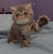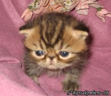 Vår lilla bruntabby exotichona Toffeetassen, letar efter sin egen familj. Mycket mys och bus kan utlovas. Hon är en mycket påhittig liten tös. Klar att flytta nästa fredag den 1 september.